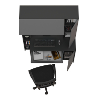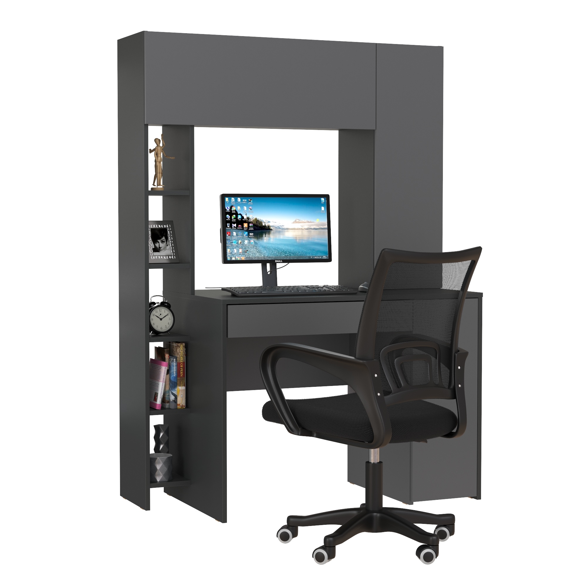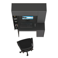Удобный и устойчивый, с тумбой под системный блок и выдвижным ящиком для канцелярии, дополнен практичной надстройкой. Надстройка с вместительной нишей за откидным фасадом и распашным отделением с полкой, выделяет на столе удобную нишу для монитора. Закрытые отделения стола хранят деловые тайны, а пять полок стеллажа - документы, книги в удобной близости. Тумба расположена с правой стороны стола компьютерного, стеллаж - с левой. Дверки и ящик стола открываются за край фасада. Распашные двери мебели на четырёхшарнирных петлях без доводчиков, откидные фасады - на газовых лифтах, ручки - пластик. В выдвижных ящиках столов и тумб используются металлические направляющие.