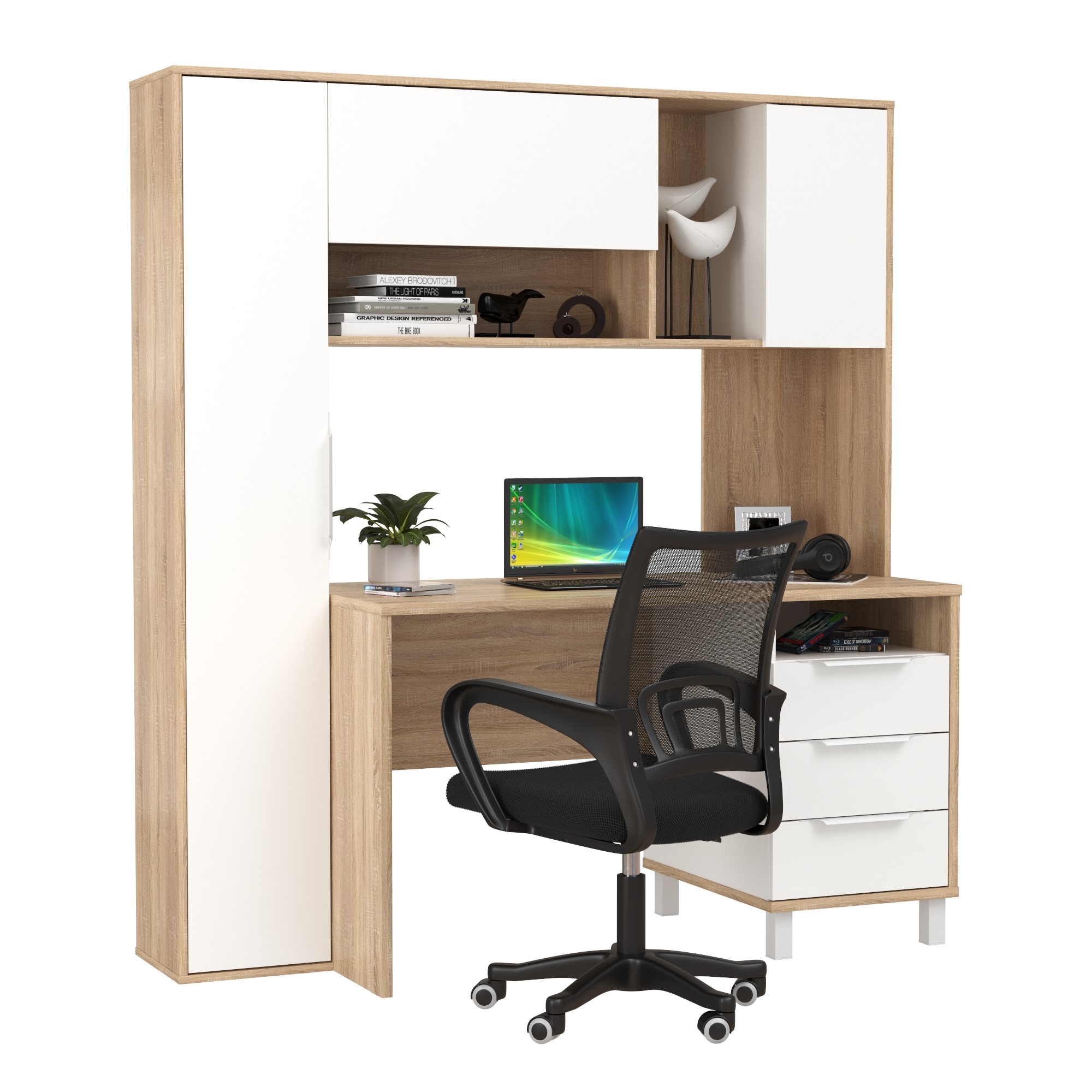 Отзывы о Столплит Домашний офис Mobi Комфорт 12.95N с компьютерным креслом 103 чёрного цвета Дуб Сонома, Белый