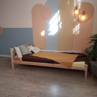 Данная модель очень прочная. Основания кровати усиленные и выполнены из массива березы, что позволит спокойно выдержать вес взрослого человека.