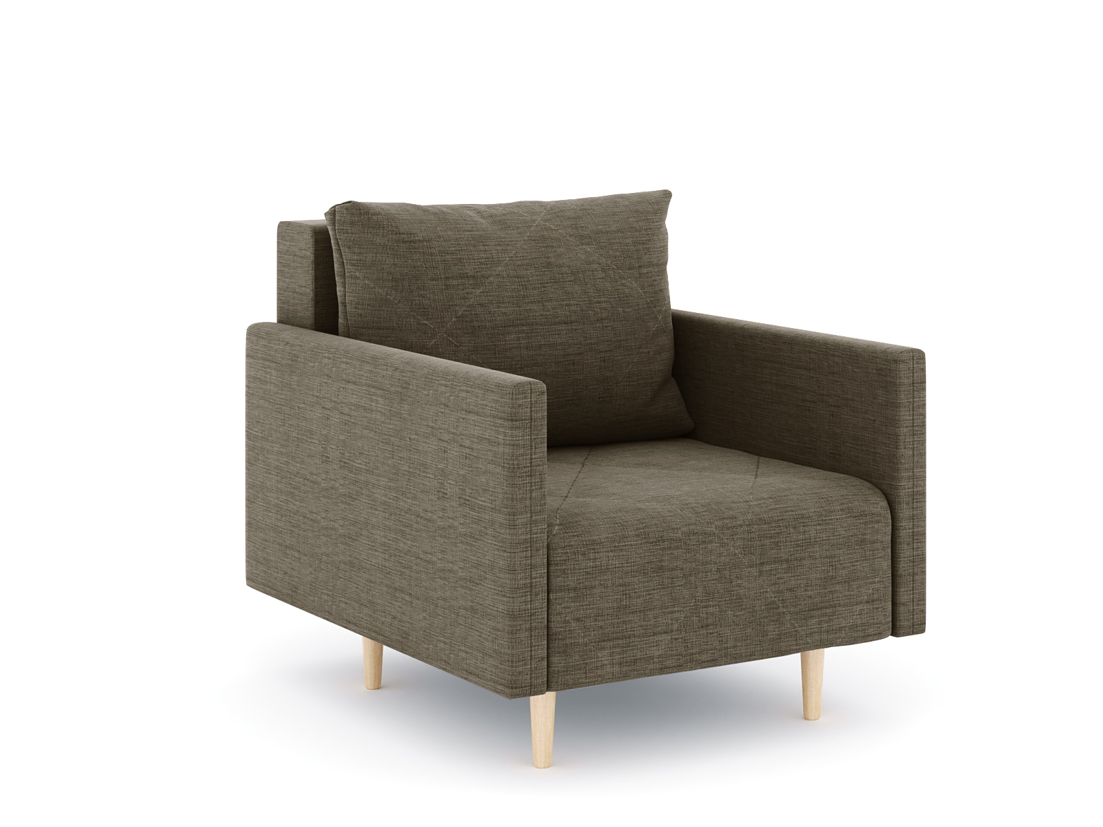 Кресло для отдыха. Каркас ДСП, ДВП, ЛДСП, фанера, брус хвойных пород. Наполнение высокоэластичный ППУ. Наполнение подушки-крошка ППУ. Высота сиденья от пола 450мм. Глубина сиденья без подушки 760мм. Опора массив березы, высота опоры 150мм.