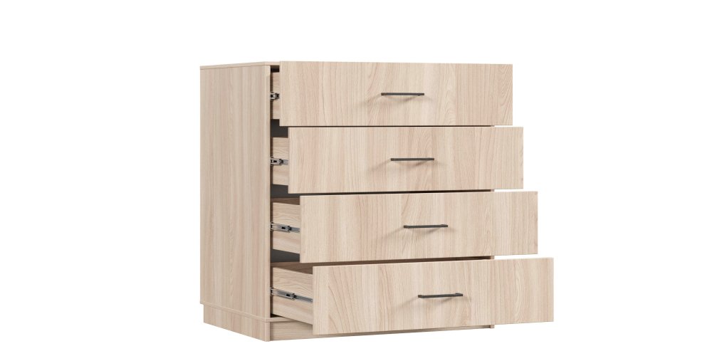 Комод «Классика», оснащённый четырьмя выдвижными ящиками с системой полного выдвижения, представляет собой многофункциональный предмет мебели, идеально подходящий для различных функциональных зон жилого пространства, таких как гостиная, кабинет или прихожая. Корпус комода изготовлен из ламинированной древесно-стружечной плиты (ЛДСП) толщиной 16 мм, что обеспечивает высокую прочность и долговечность конструкции. Эта модель демонстрирует превосходное сочетание эстетических и практических качеств, что делает её востребованным элементом современного интерьера.