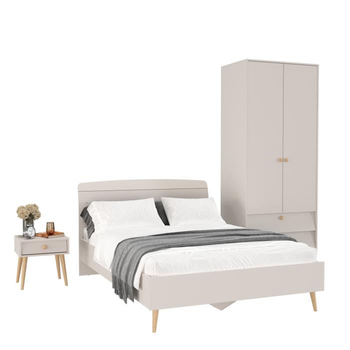 Шкаф 2-х дверный с кроватью двуспальной Афина 1400 и прикроватной тумбочкой – отличный выбор для обустройства спальни с комфортом и стилем. Теплый цвет кашемир серый добавляет интерьеру уют и гармонию, прекрасно дополняя современный декор спальни.