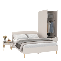 Шкаф 2-х дверный с кроватью двуспальной Афина 1600 и прикроватной тумбочкой – гармоничный и функциональный комплект для современной спальни. Теплый цвет кашемир серый добавляет интерьеру уют и гармонию, прекрасно дополняя современный декор спальни.