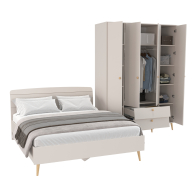 Набор мебели Афина из кровати двуспальной 1600 и шкафа 4-х дверного для одежды — изящное воплощение минимализма и утонченного стиля! Теплый цвет кашемир серый добавляет интерьеру уют и гармонию, прекрасно дополняя современный декор спальни.