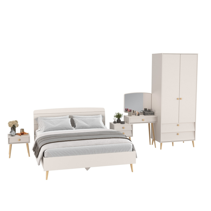 Комплектация включает кровать 1600 Афина 4-22901, тумбу прикроватную Афина 4-09901, трюмо с зеркалом Афина 4-25901 и шкаф 2-х дверный Афина 4-75901.
