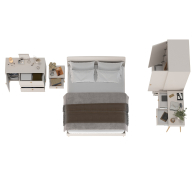 Комплектация включает кровать 1600 Афина 4-22901, тумбу прикроватную Афина 4-09901, туалетный столик Афина 4-25904, комод с дверкой и тремя ящиками Афина 4-44901 и шкаф 2-х дверный Афина 4-75901.