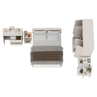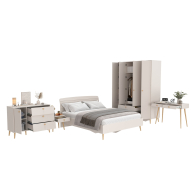 Комплектация включает кровать 1600 Афина 4-22901, тумбу прикроватную Афина 4-09901, туалетный столик Афина 4-25904, комод с дверкой и тремя ящиками Афина 4-44901 и шкаф 4-х дверный Афина 4-75930.