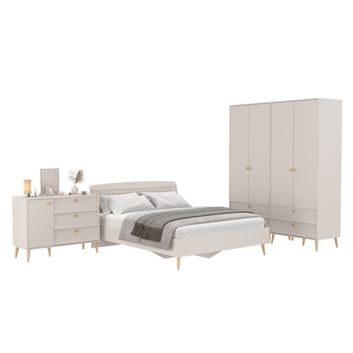 Афина кровать 1600 с комодом и двумя шкафами – компактное решение для уютной спальни. Теплый цвет кашемир серый добавляет интерьеру уют и гармонию, прекрасно дополняя современный декор спальни.