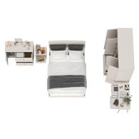Комплектация включает кровать 1400 Афина 4-22911, тумбу прикроватную Афина 4-09901, туалетный столик Афина 4-25904, комод с дверкой и тремя ящиками Афина 4-44901 и шкаф 4-х дверный Афина 4-75930.