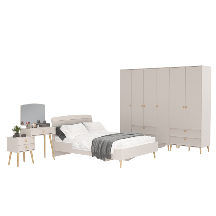 Комплектация включает кровать 1400 Афина 4-22911, трюмо с зеркалом Афина 4-25901, шкаф 2-х дверный Афина 4-75901 и шкаф 4-х дверный Афина 4-75930.