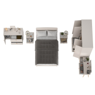 Комплектация включает кровать 1200 Афина 4-22905, две тумбы прикроватные Афина 4-09901, трюмо с зеркалом Афина 4-25901, комод с дверкой и тремя ящиками Афина 4-44901 и шкаф 4-х дверный Афина 4-75930.