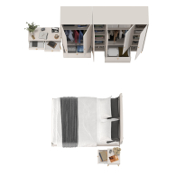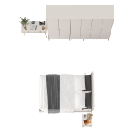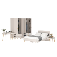 Комплектация включает кровать 1400 Афина 4-22911, тумбу прикроватную Афина 4-09901, туалетный столик Афина 4-25904, шкаф 2-х дверный Афина 4-75901 и шкаф 4-х дверный Афина 4-75930.