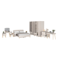 Самый полный набор мебели в спальню с двуспальной кроватью Афина 1400. омплектация включает кровать 1400 Афина 4-22911, две тумбы прикроватные Афина 4-09901, туалетный столик Афина 4-25904, трюмо с зеркалом Афина 4-25901, комод с дверкой и тремя ящиками Афина 4-44901, шкаф 2-х дверный Афина 4-75901 и шкаф 4-х дверный Афина 4-75930.