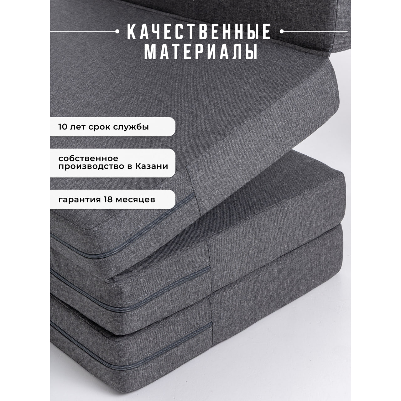 Матрас Айден — это универсальный предмет мебели, который отличается функциональностью и высочайшийм комфортом в использовании. Благодаря конструкции трансформер 5 в 1 за считанные секунды превращается в кресло, пуф, шезлонг, игровой модуль или полноценную кровать.