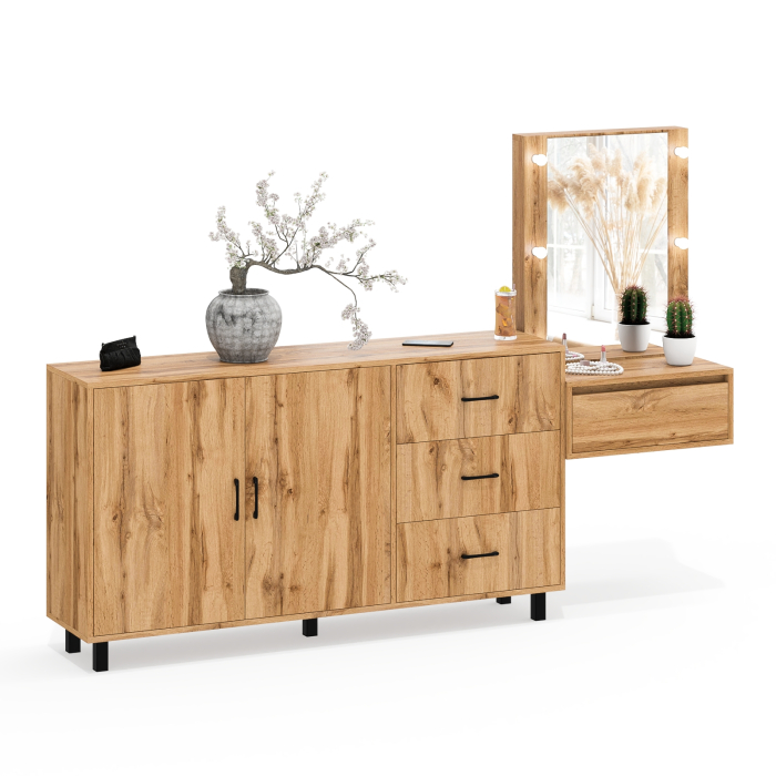 Косметический навесной столик с подсветкой и комод с ящиками и дверками 123-1604 – функциональное сочетание комода и навесного столика с зеркалом и подсветкой создаёт удобное место для ухода за собой и хранения аксессуаров.