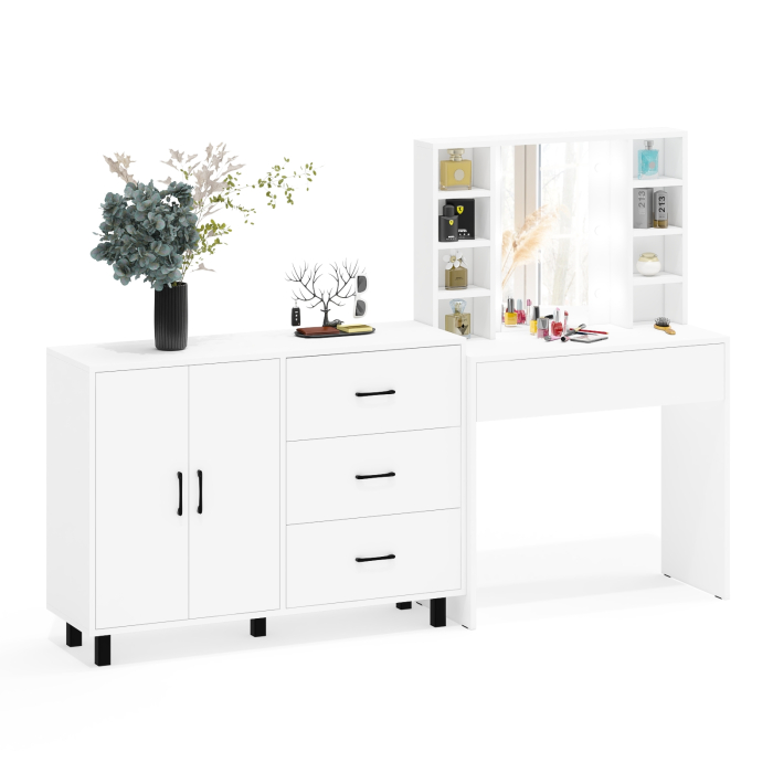 Туалетный столик с подсветкой 115 и тумба-комод 123-1204 — универсальный комплект для стильной спальни с удобной подсветкой и местом для хранения.