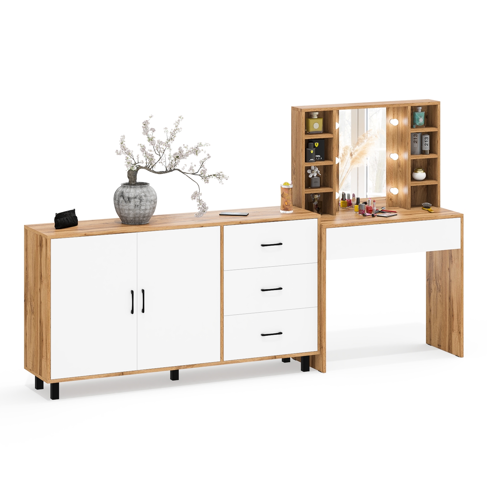 Косметический стол с подсветкой и ящиком 115 и комод 123-1604 — современный комплект, который гармонично впишется в интерьер спальни. Подсветка и вместительный комод обеспечивают удобство в повседневном использовании.