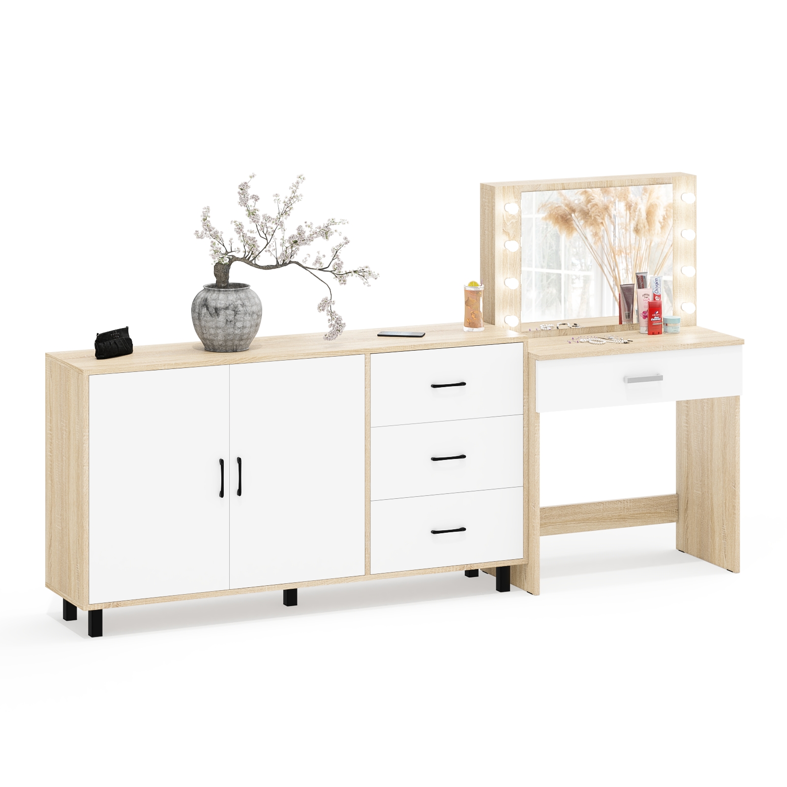 Отзывы о Столплит Комод-тумба 123-1604 и туалетный столик с подсветкой СТ-4 Дуб Сонома, Белый