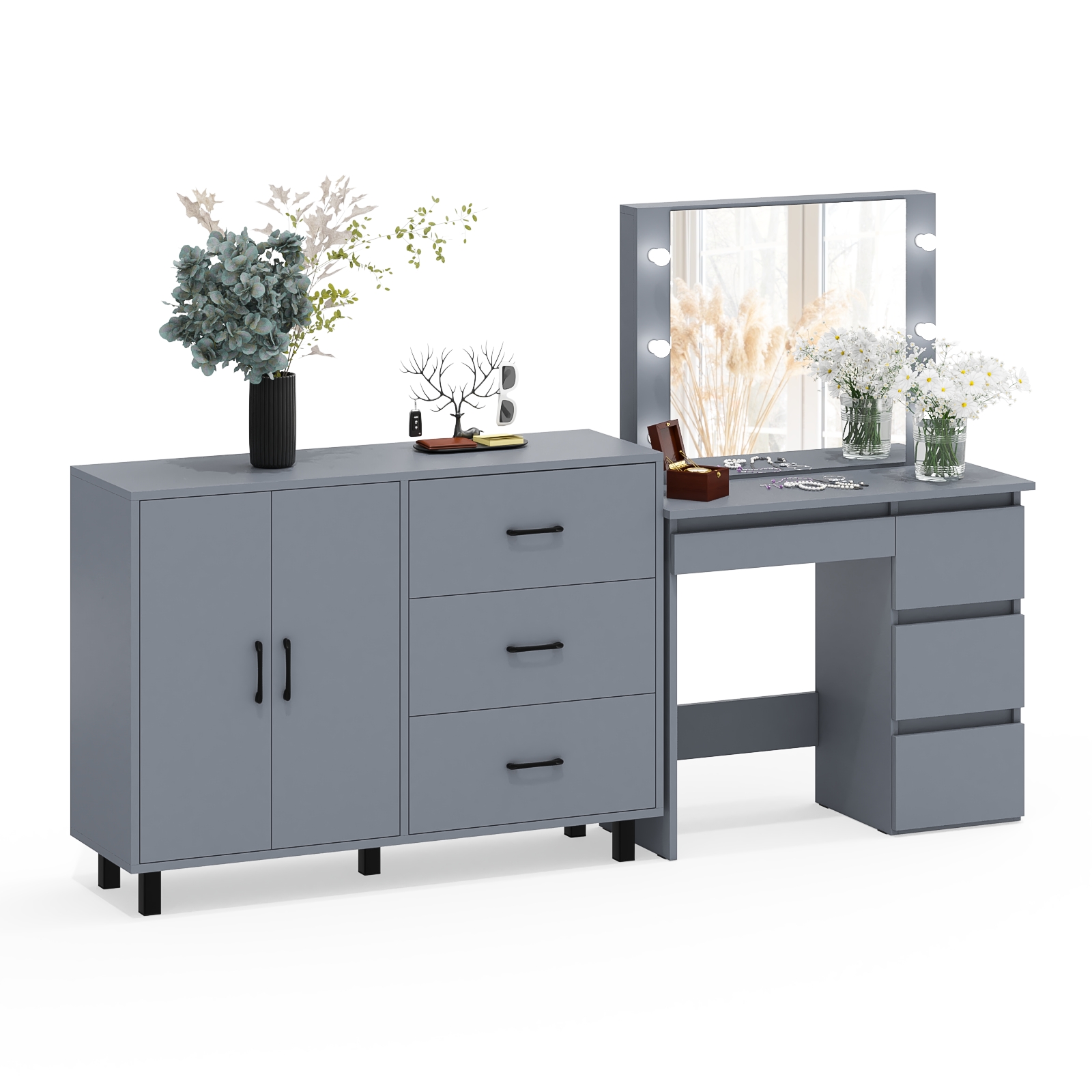 Комод-тумба 123-1204 и столик косметический с подсветкой и зеркалом Сура — стильный комплект для вашей спальни. Вместительный комод и удобный столик с зеркалом и подсветкой создают комфортное пространство для хранения и ухода за собой.