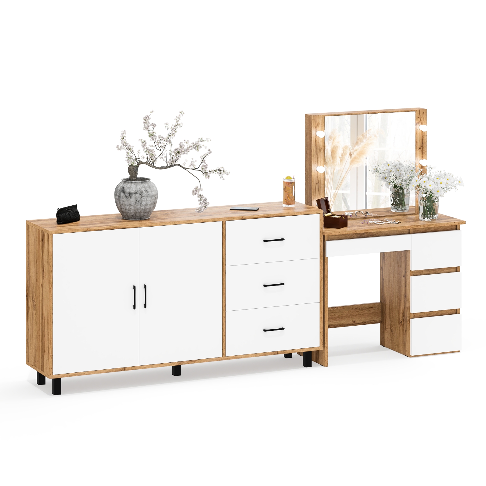 Отзывы о Столплит Косметический столик Сура с зеркалом и подсветкой и с тумбой-комодом 123-1604 Белый/Дуб вотан