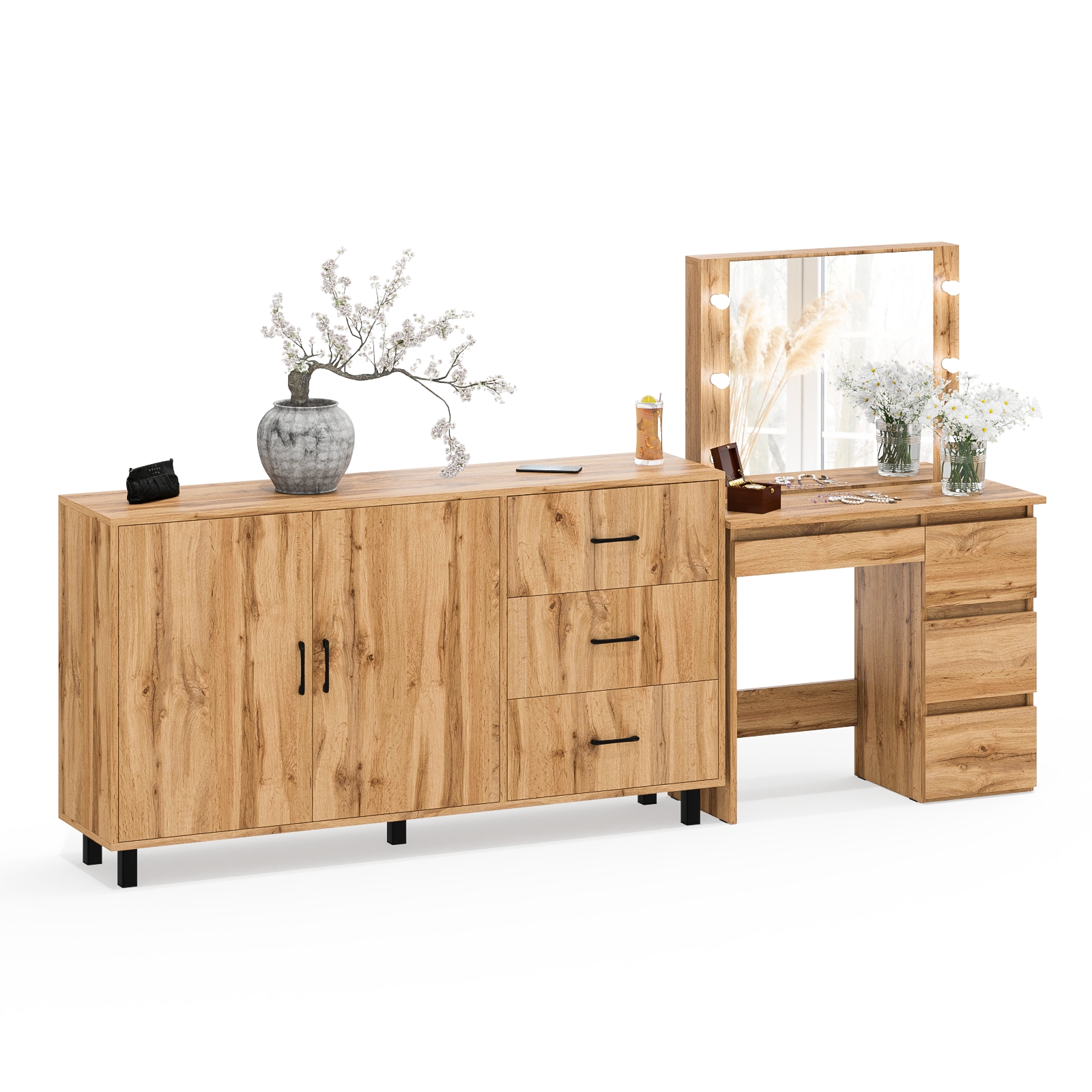 Отзывы о Столплит Косметический столик Сура с зеркалом и подсветкой и с тумбой-комодом 123-1604 Дуб вотан