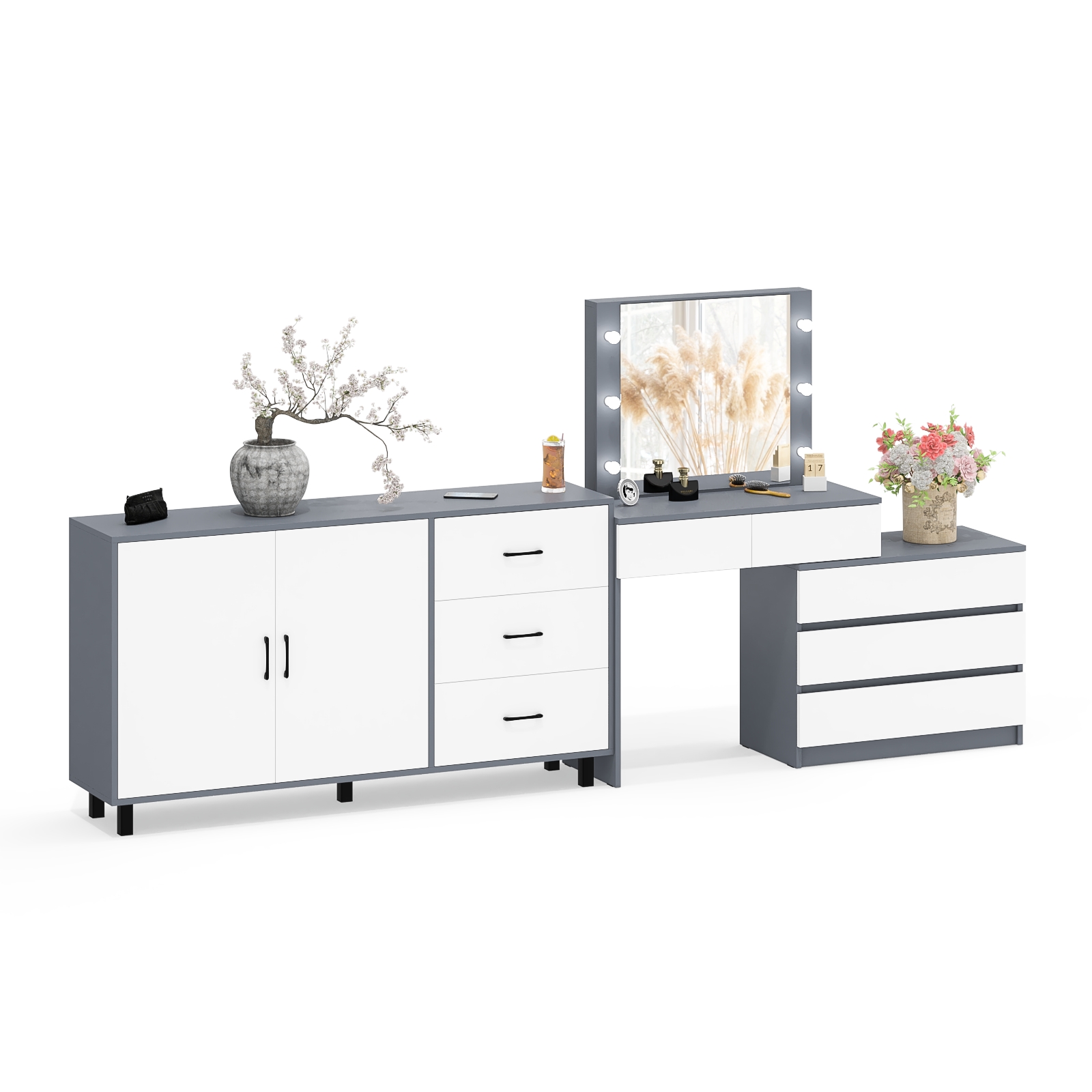 Туалетный столик-трансформер с подсветкой и зеркалом 110 и комод-тумба 123-1604. Функциональное сочетание комода и столика с зеркалом и подсветкой создаёт удобное место для ухода за собой и хранения аксессуаров.