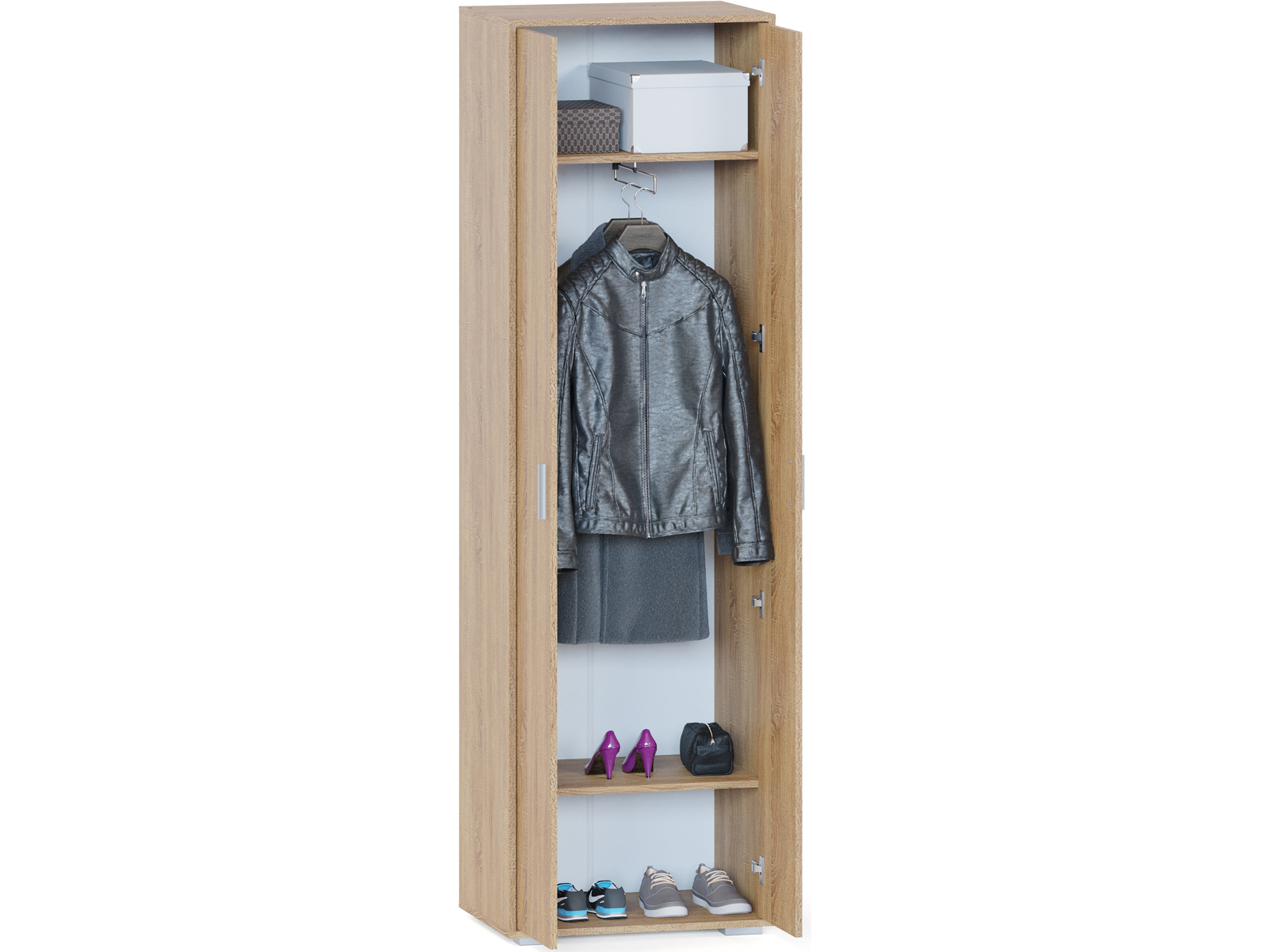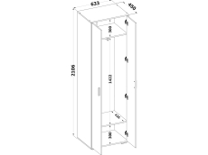 Шкаф ШО-350 - универсальный двухстворчатый шкаф для одежды на регулируемых опорах. Модель оборудована выдвижной штангой для вешалок и тремя полками для размещения головных уборов, вещей и прочего. Модель легко впишется в готовый интерьер офиса и дома.
