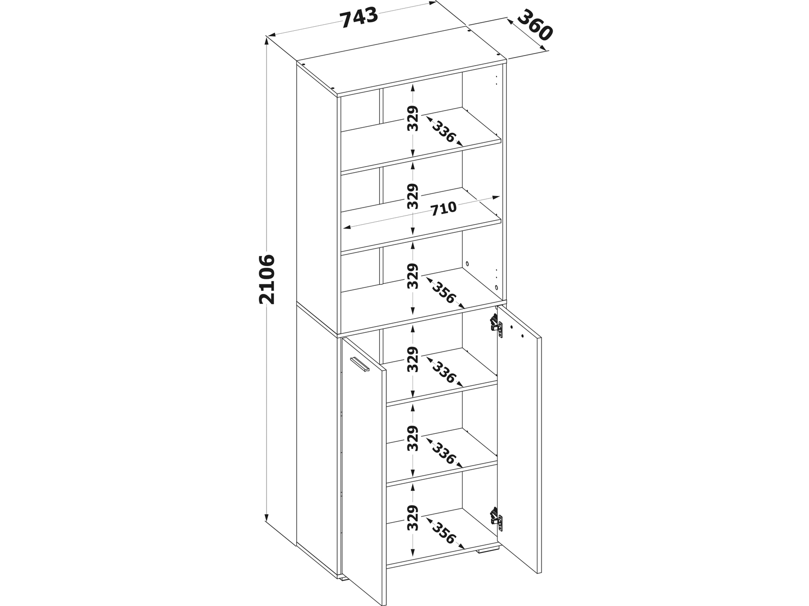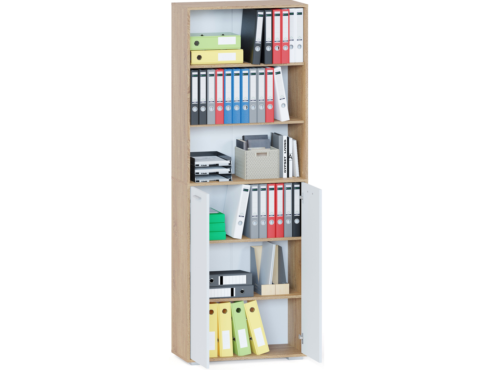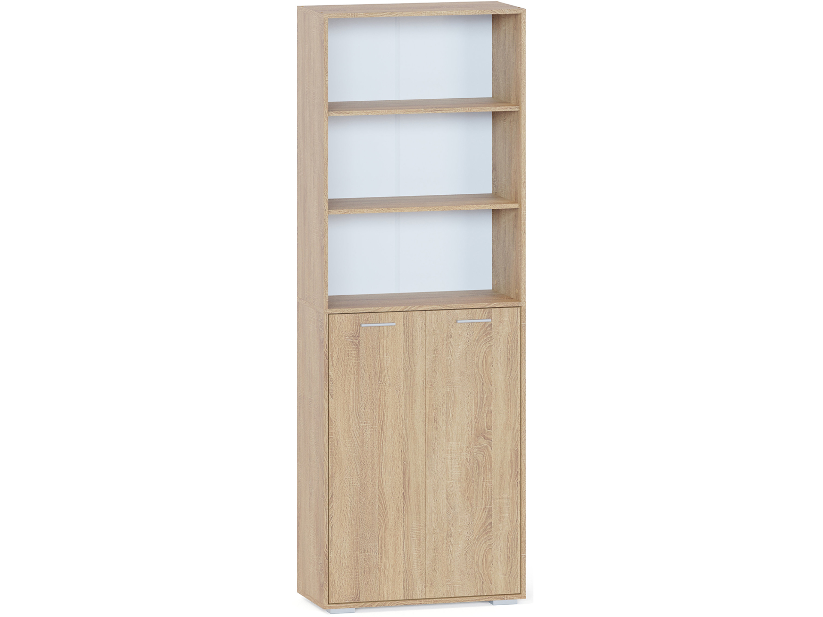 Стеллаж ШУ-353 — универсальное решение для тех, кто ценит практичность и стиль. Подойдет для хранения документов, канцелярии и книг в вашем офисе. А также дополнит интерьер дома. Вместительный стеллаж имеет три открытые полки, а также нижнюю часть с распашными дверьми и тремя полками. Корпус и полки изготовлены из качественного ламинированного ДСП толщиной 16 мм, самого популярного материала для производства корпусной мебели, обеспечивающего необходимую прочность и долговечность деталей.