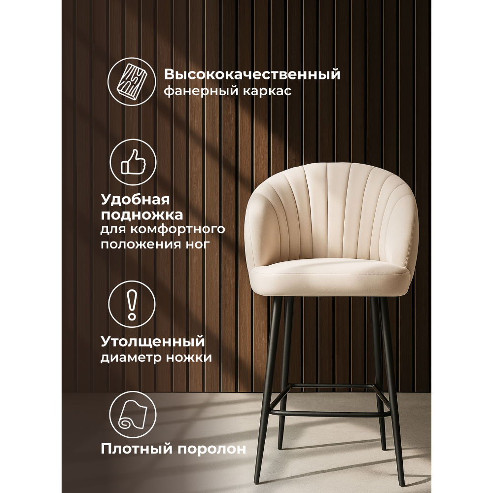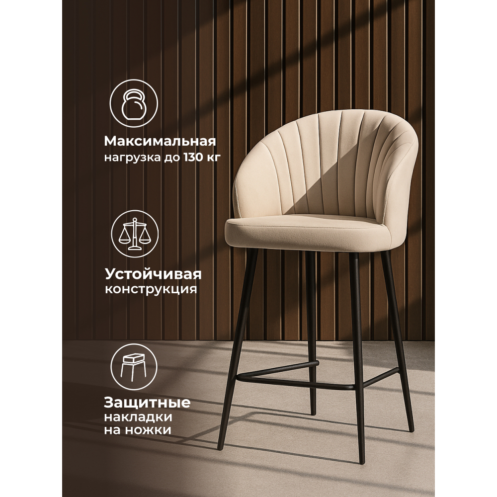 Отзывы о Столплит Стул полубарный на металлокаркасе Бэнбу некрутящийся marseille (чёрный) Бежевый