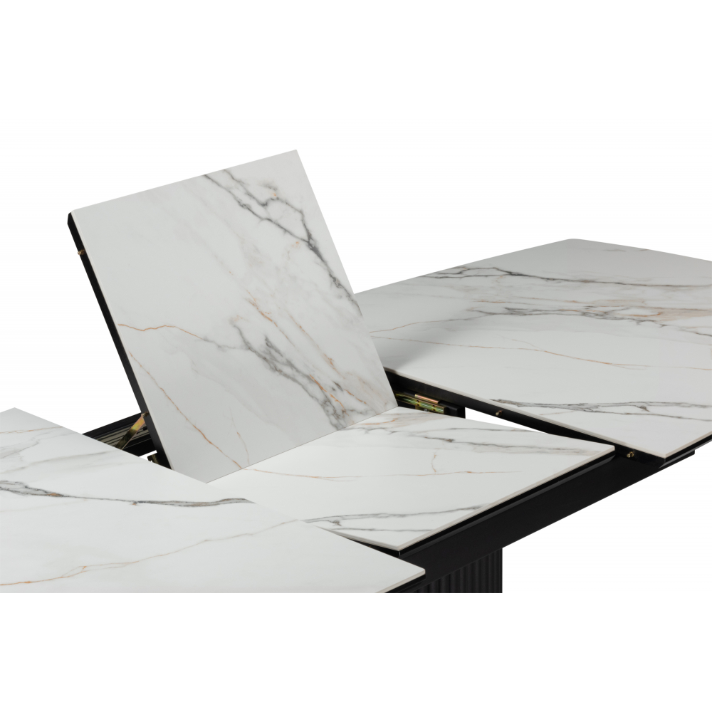 Керамическая поверхность устойчива к повреждениям, легко очищается и не боится высоких температур, что делает стол практичным в использовании.