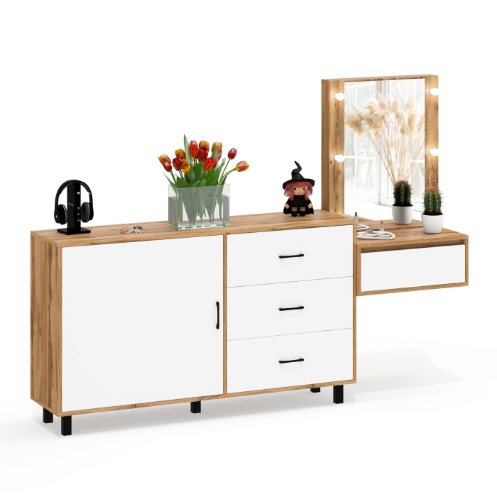 Отзывы о Столплит Стол косметический навесной с подсветкой и комод 122-1504 Белый/Дуб вотан