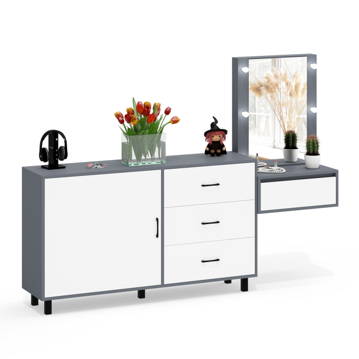 Отзывы о Столплит Стол косметический навесной с подсветкой и комод 122-1504 Графит/Белый