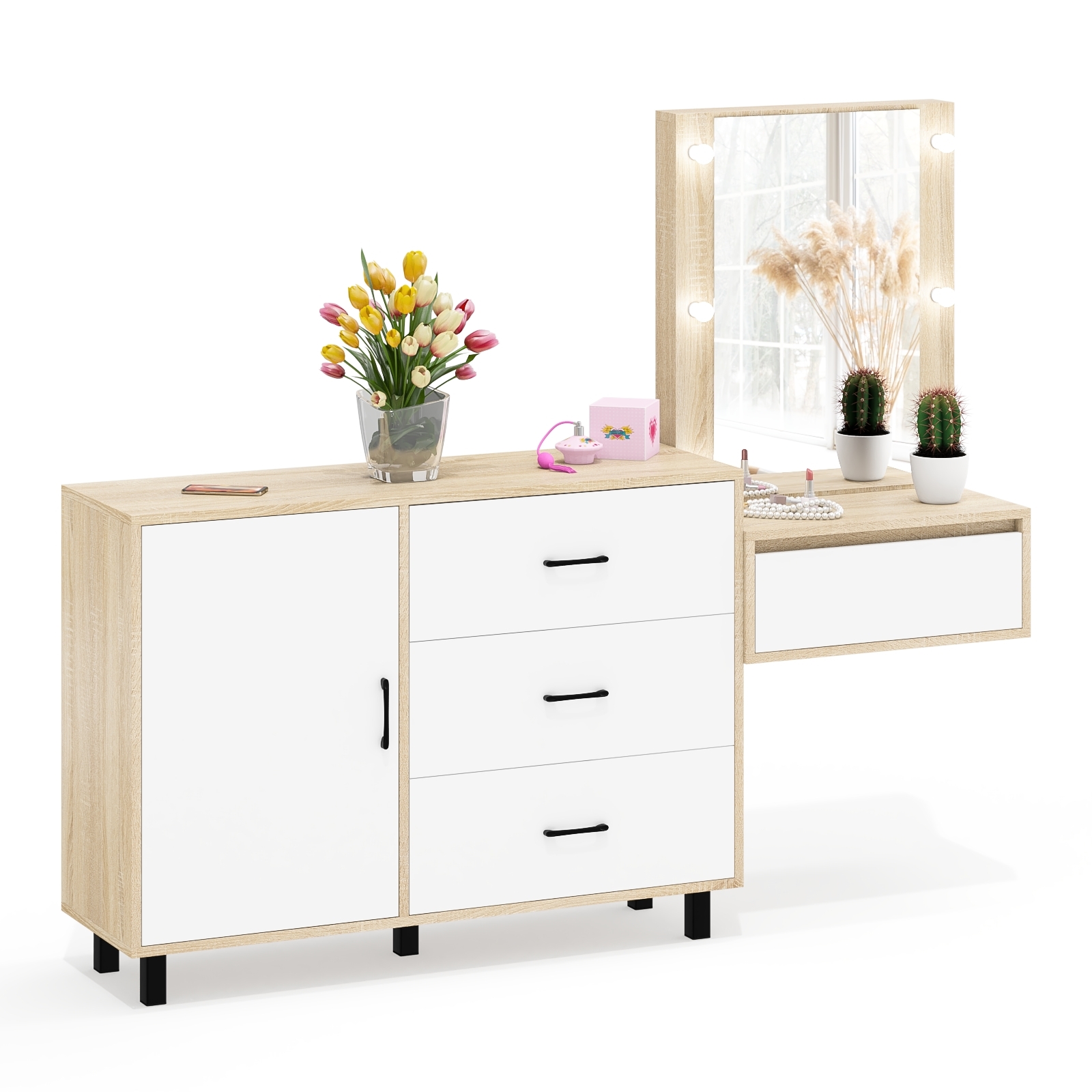 Отзывы о Столплит Комод с дверками и ящиками 122-1204 и косметический столик навесной с подсветкой Дуб Сонома, Белый