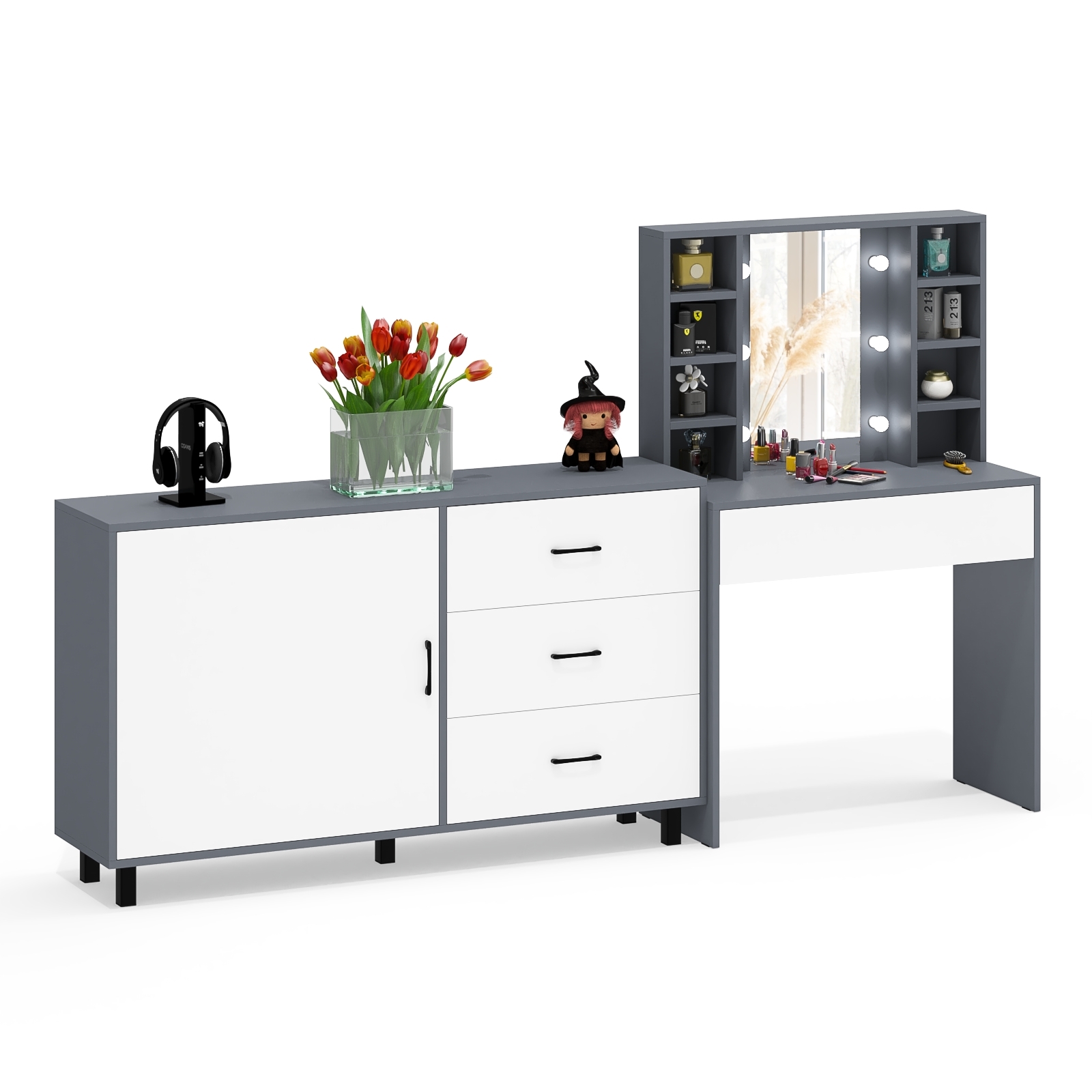 Отзывы о Столплит Столик туалетный с полочками и с подсветкой и комод 122-1504 Графит/Белый