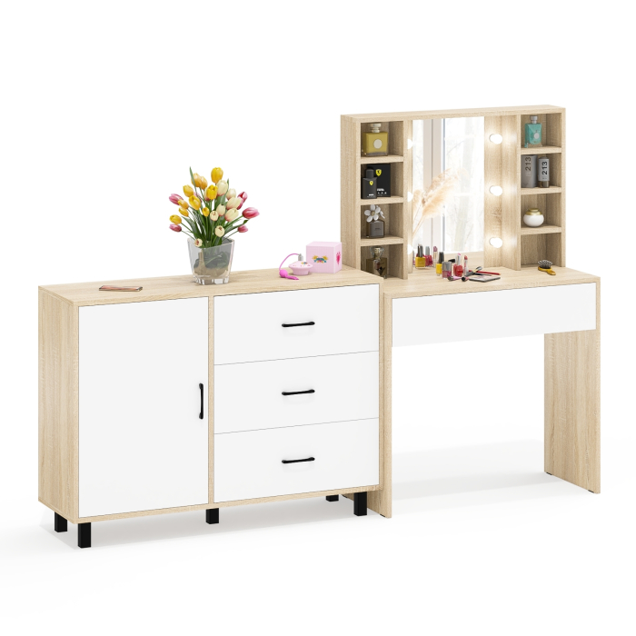 Отзывы о Столплит Туалетный столик с подсветкой 115 и комод с дверкой и 3-мя ящиками 122-1204 Дуб Сонома, Белый