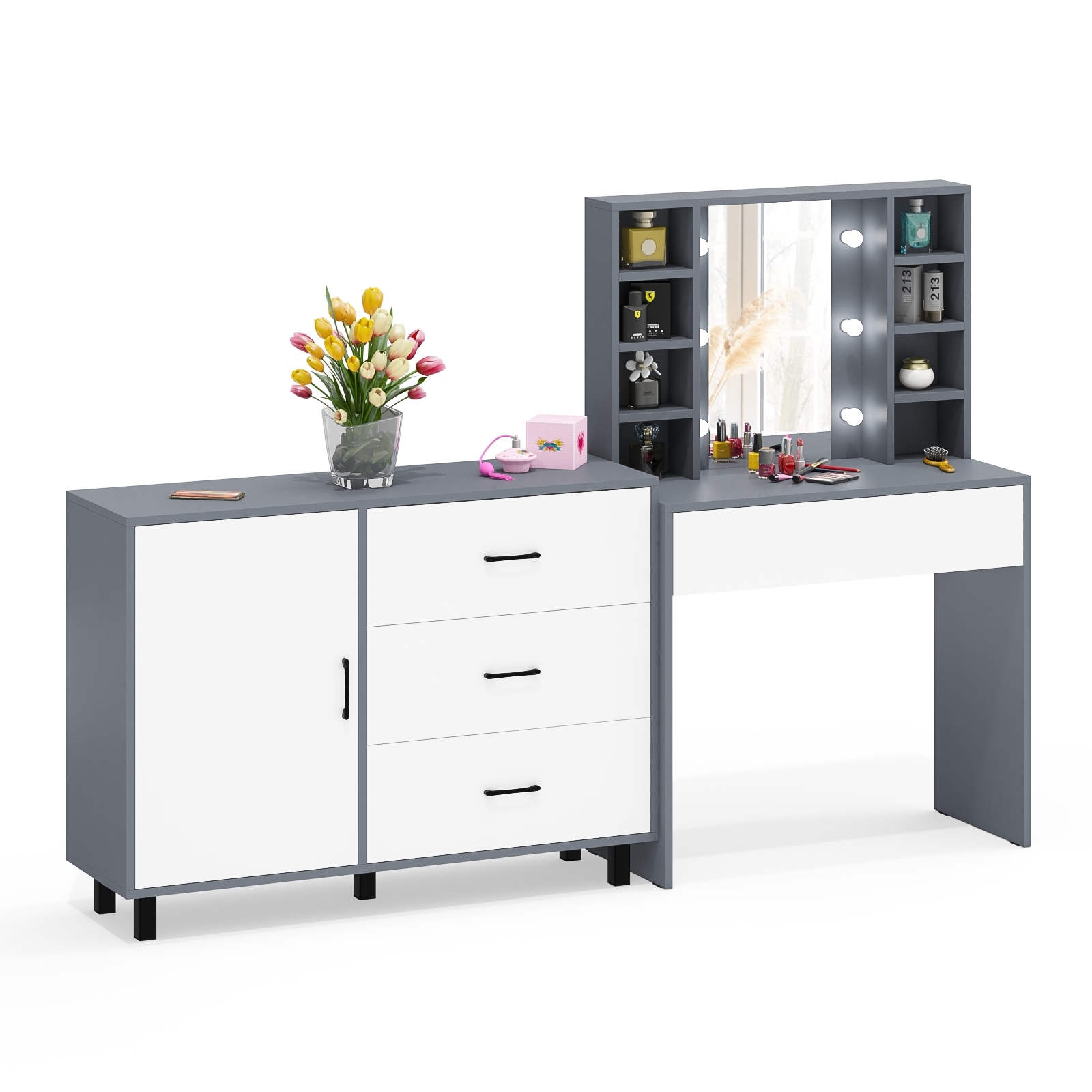 Отзывы о Столплит Туалетный столик с подсветкой 115 и комод с дверкой и 3-мя ящиками 122-1204 Графит/Белый