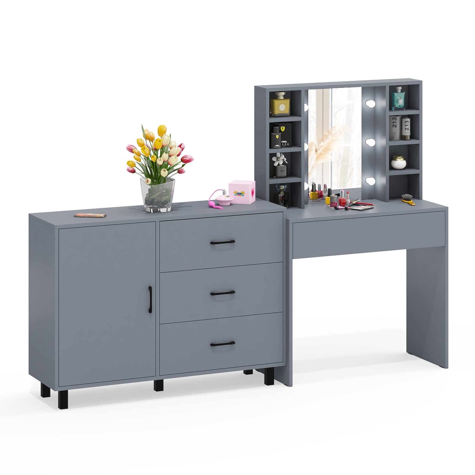 Отзывы о Столплит Туалетный столик с подсветкой 115 и комод с дверкой и 3-мя ящиками 122-1204 Графит