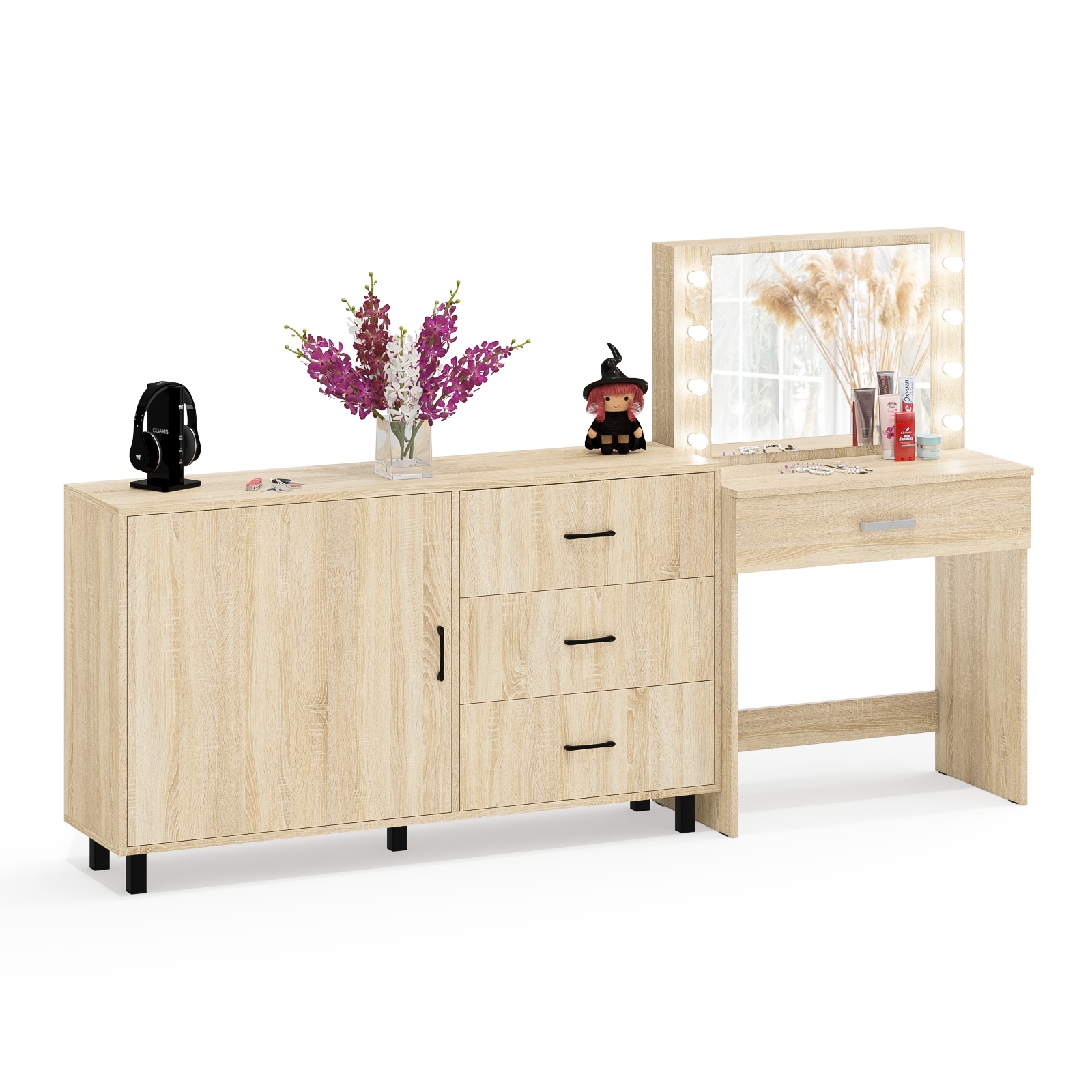 Комод ящики и дверка 122-1504 и туалетный столик с подсветкой СТ-4 — практичный комплект мебели, идеально подходящий для спальни. Подсветка и просторные ящики обеспечивают комфорт и порядок.