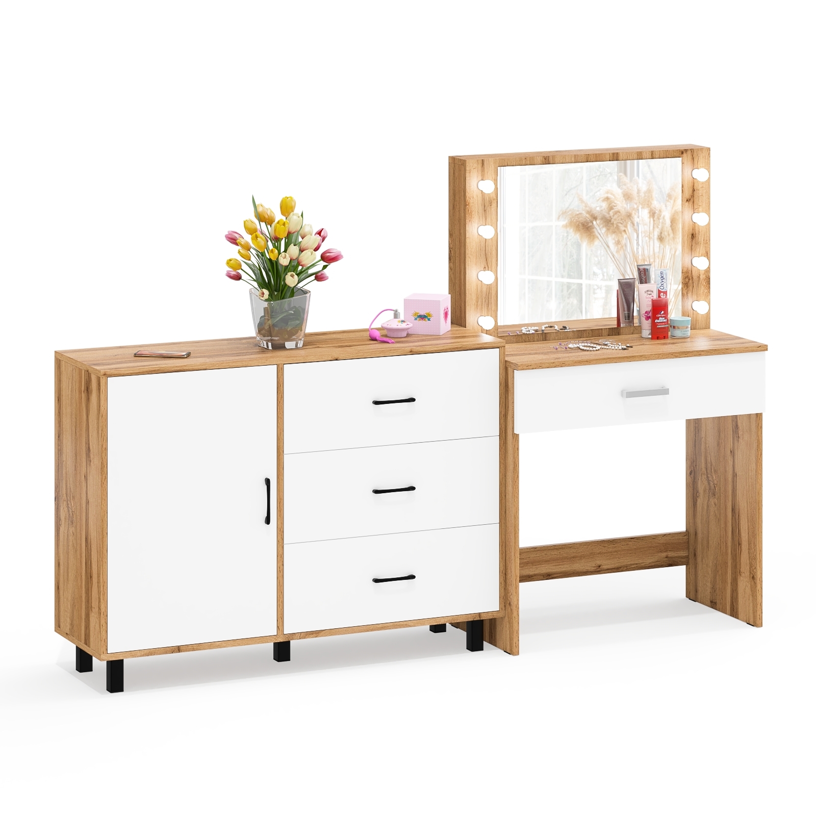 Отзывы о Столплит Косметический стол с подсветкой и выдвижным ящиком СТ-4 и комод 122-1204 Белый/Дуб вотан