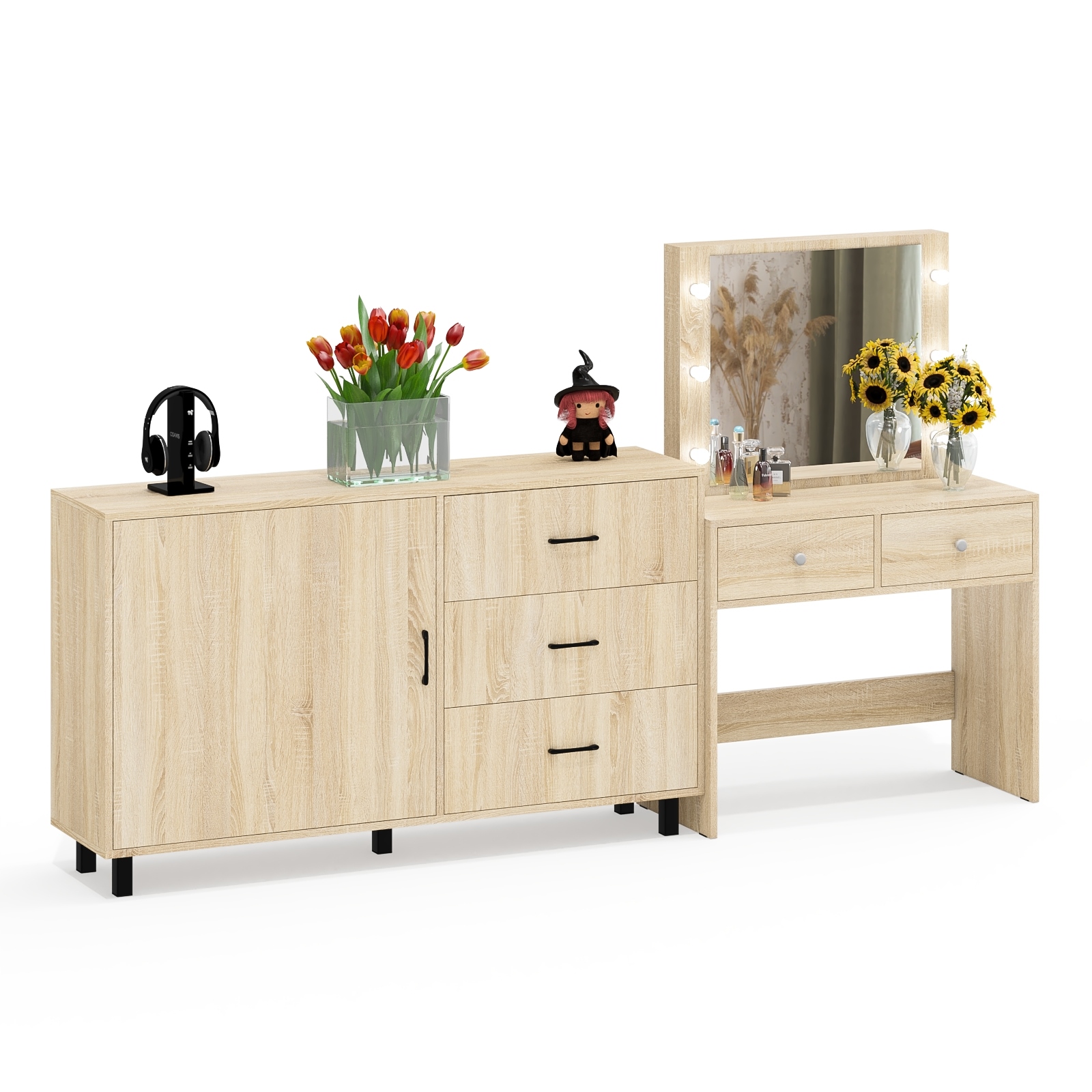 Косметический столик с лампочками СТ-5 и комод-тумба 122-1504 — гармоничный комплект, сочетающий практичность и изысканный дизайн. Отлично подойдёт для современных интерьеров.