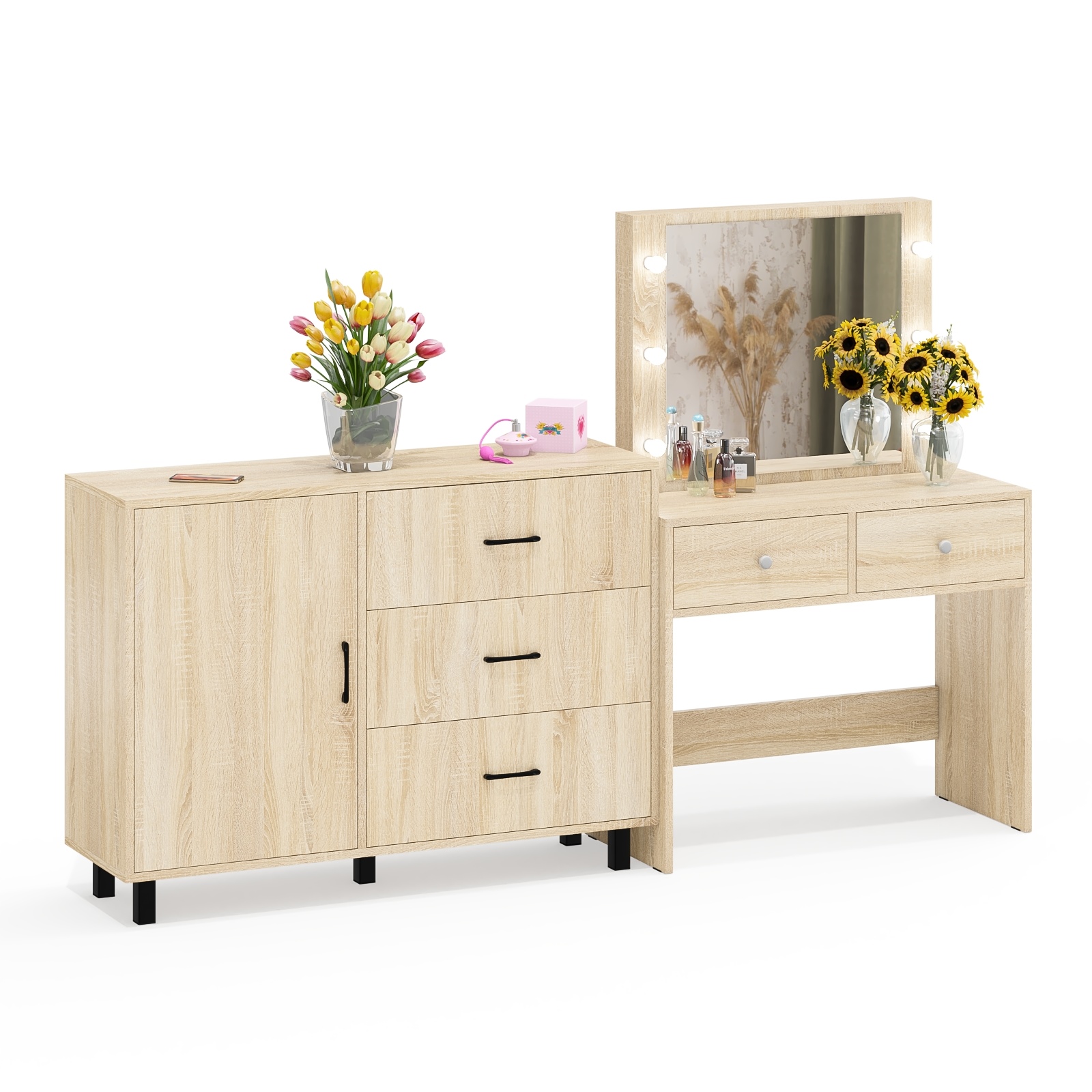 Отзывы о Столплит Стол туалетный для спальни с лампочками СТ-5 и тумба-комод 122-1204 Дуб сонома