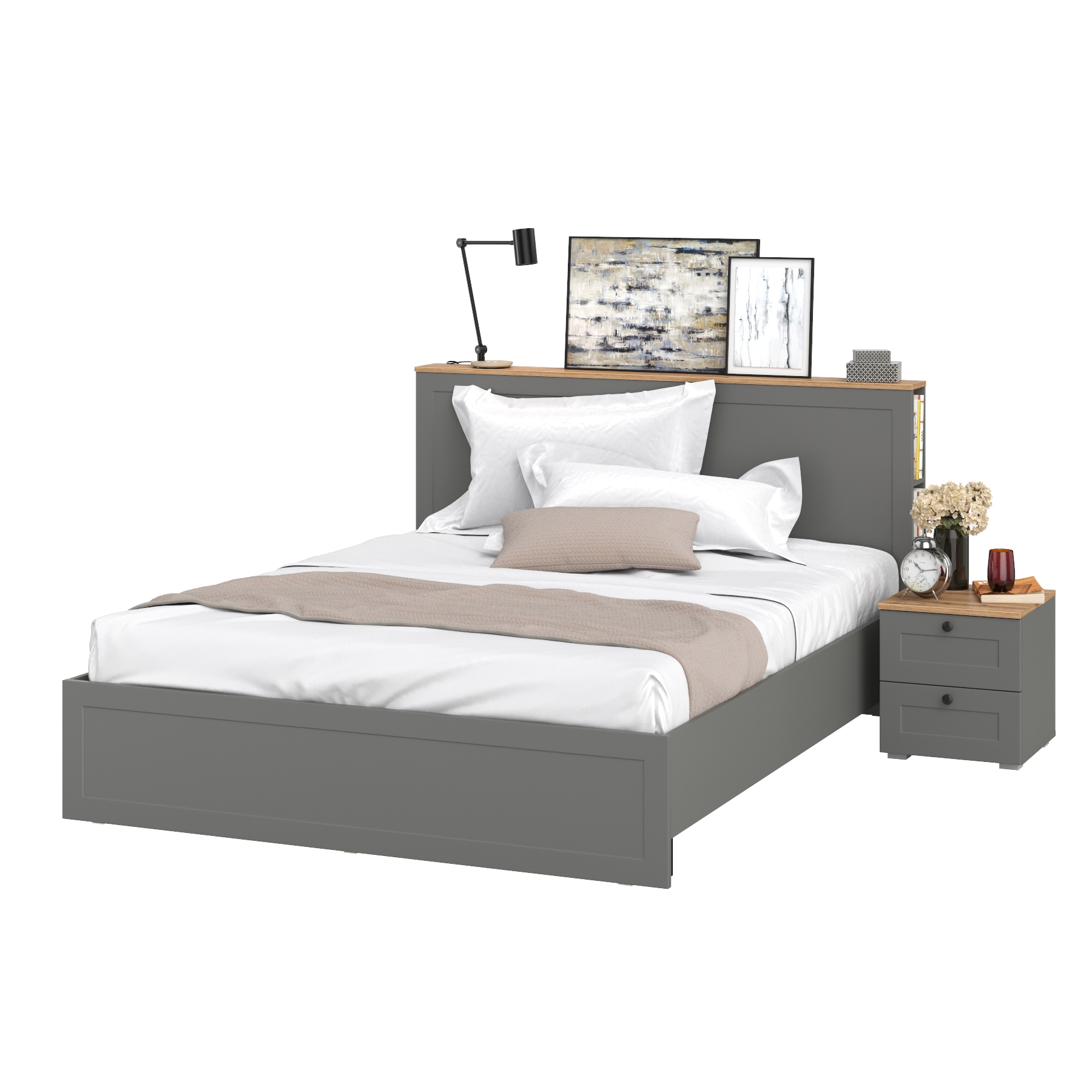 Отзывы о Столплит Кровать с ортопедическим основанием и прикроватная тумба Остин Крафт золотой/Серый