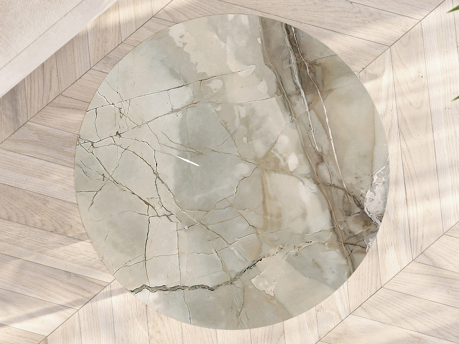 Техническая виртуозность исполнения столешницы подчеркивается яркой УФ печатью в эксклюзивных цветах, благодаря чему данная модель приобретает визуальную утонченность. Цветовая гамма столешницы из закаленного стекла с УФ печатью с точность передает природный рисунок в цвете зеленый мрамор или неро.