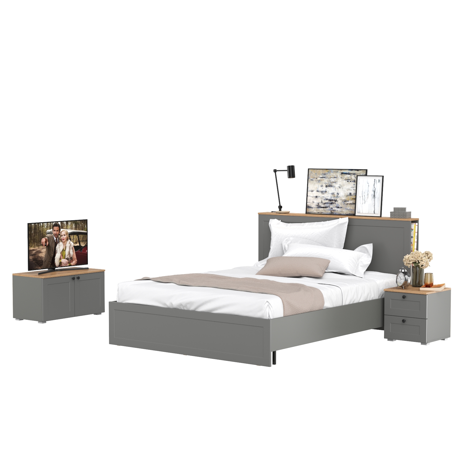 Отзывы о Столплит Кровать двуспальная с ортопедическим основанием Остин с прикроватной тумбочкой и тумбой 13.257 Крафт золотой/Серый