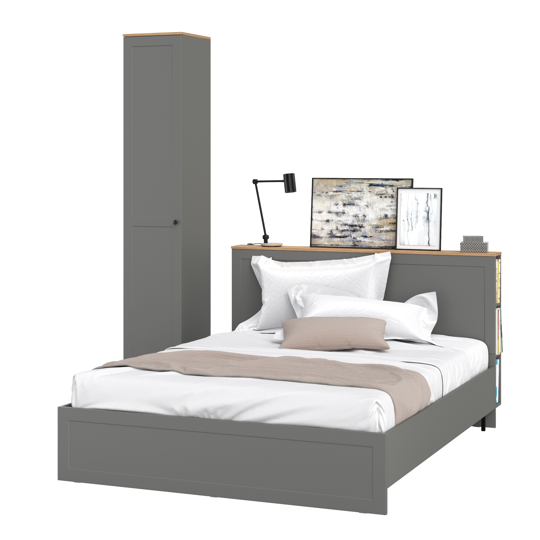Кровать двухспальная с ортопедическим основанием и шкаф-пенал Остин. Комплектация состоит из двуспальной кровати Остин 11.53 с ортопедическим основанием и пенала с полками Остин 13.227.