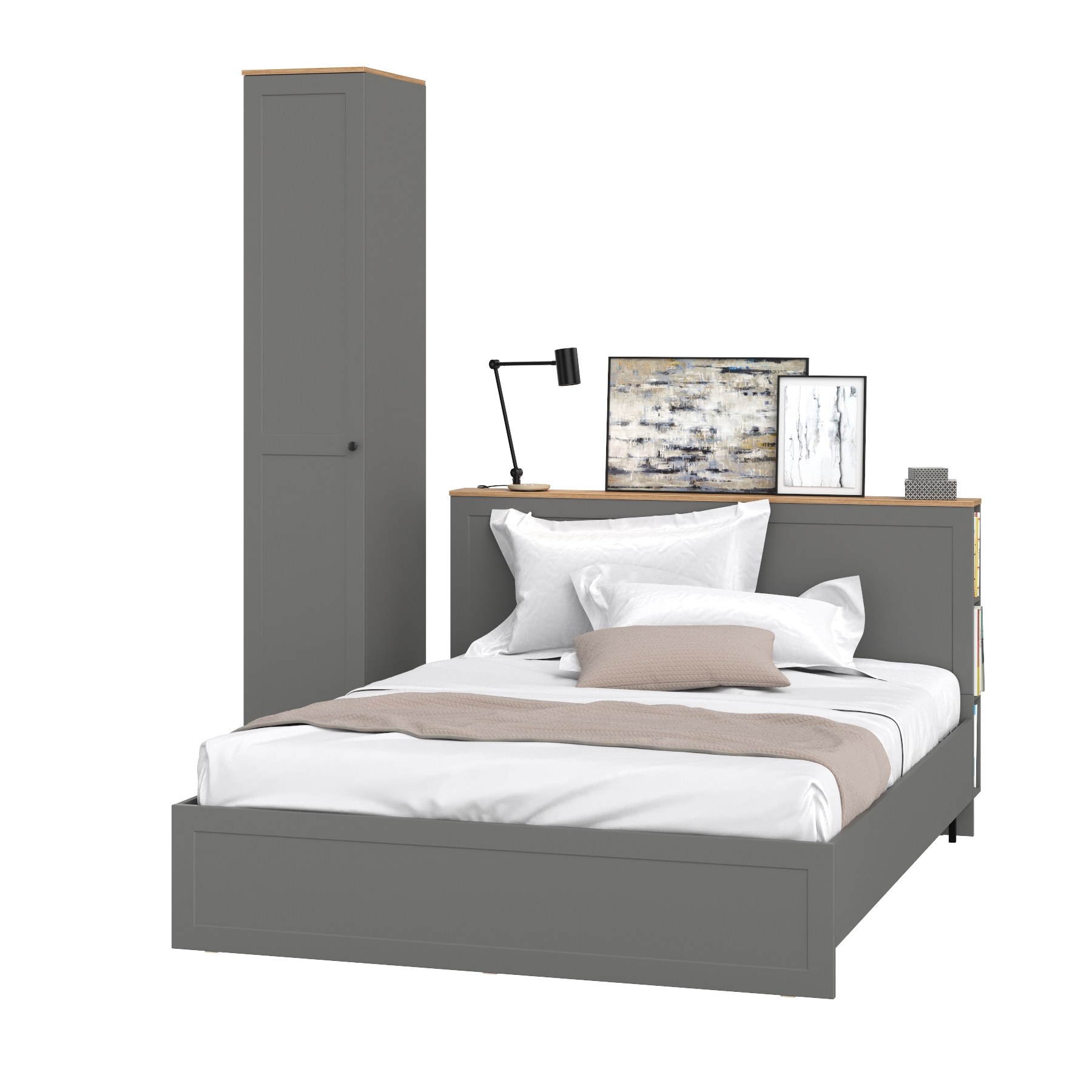 Кровать 1600 с ортопедическим основанием Остин и бельевой шкаф-пенал 13.225. Комплектация состоит из двуспальной кровати Остин 11.53 с ортопедическим основанием и глубокого пенала Остин 13.225.