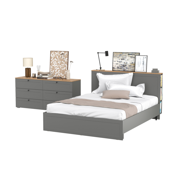 Большой вместительный комод Остин 16.240 и кровать Остин 1600. Комплектация состоит из двуспальной кровати Остин 11.53 с ортопедическим основанием и широкого комода Остин 16.240.