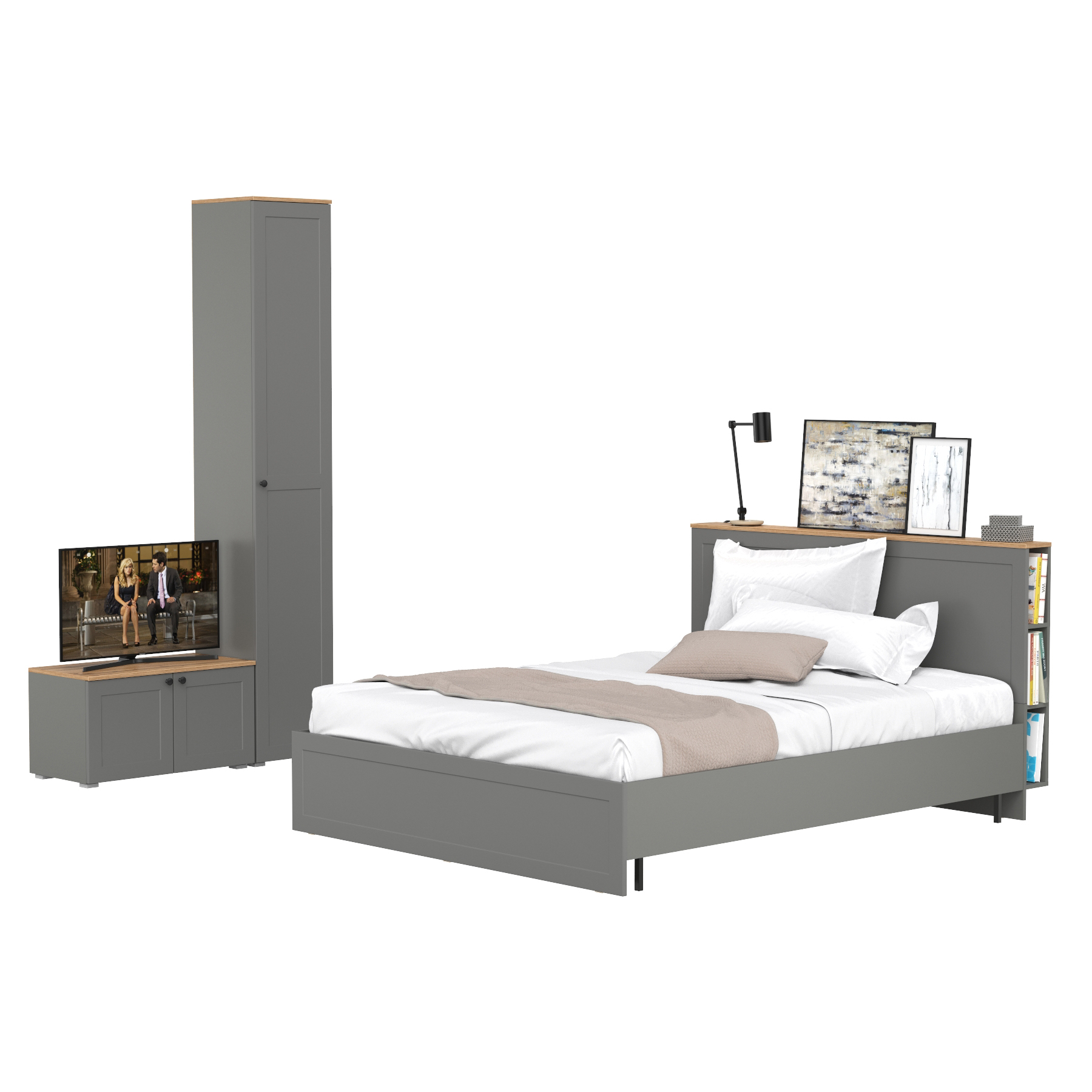 Отзывы о Столплит Кровать со спальным местом 1600 с ортопедическим основанием с тумбой и шкаф-пеналом Остин Крафт золотой/Серый