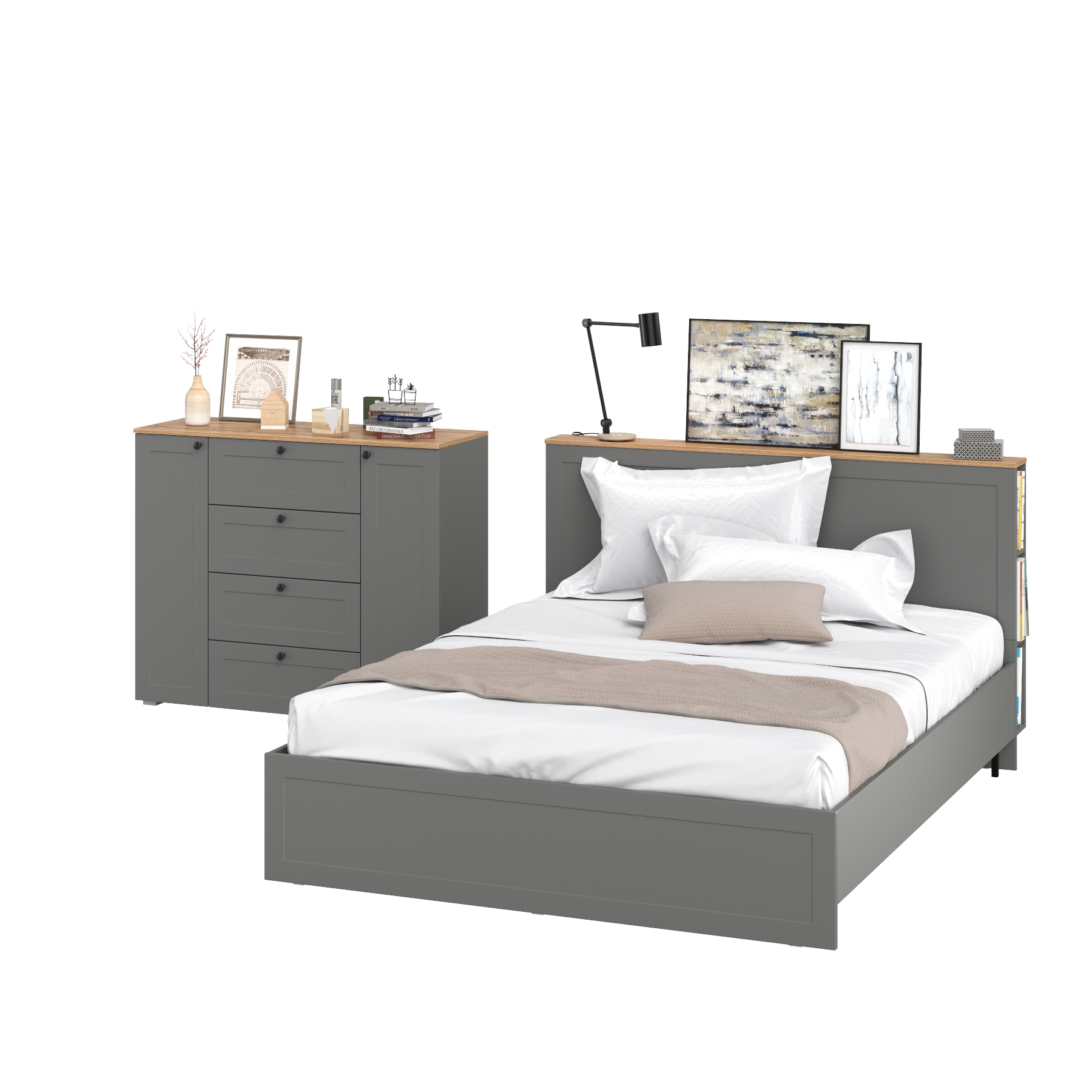 Отзывы о Столплит Комод-тумба Остин 16.221 и двуспальная кровать с основанием Крафт золотой/Серый