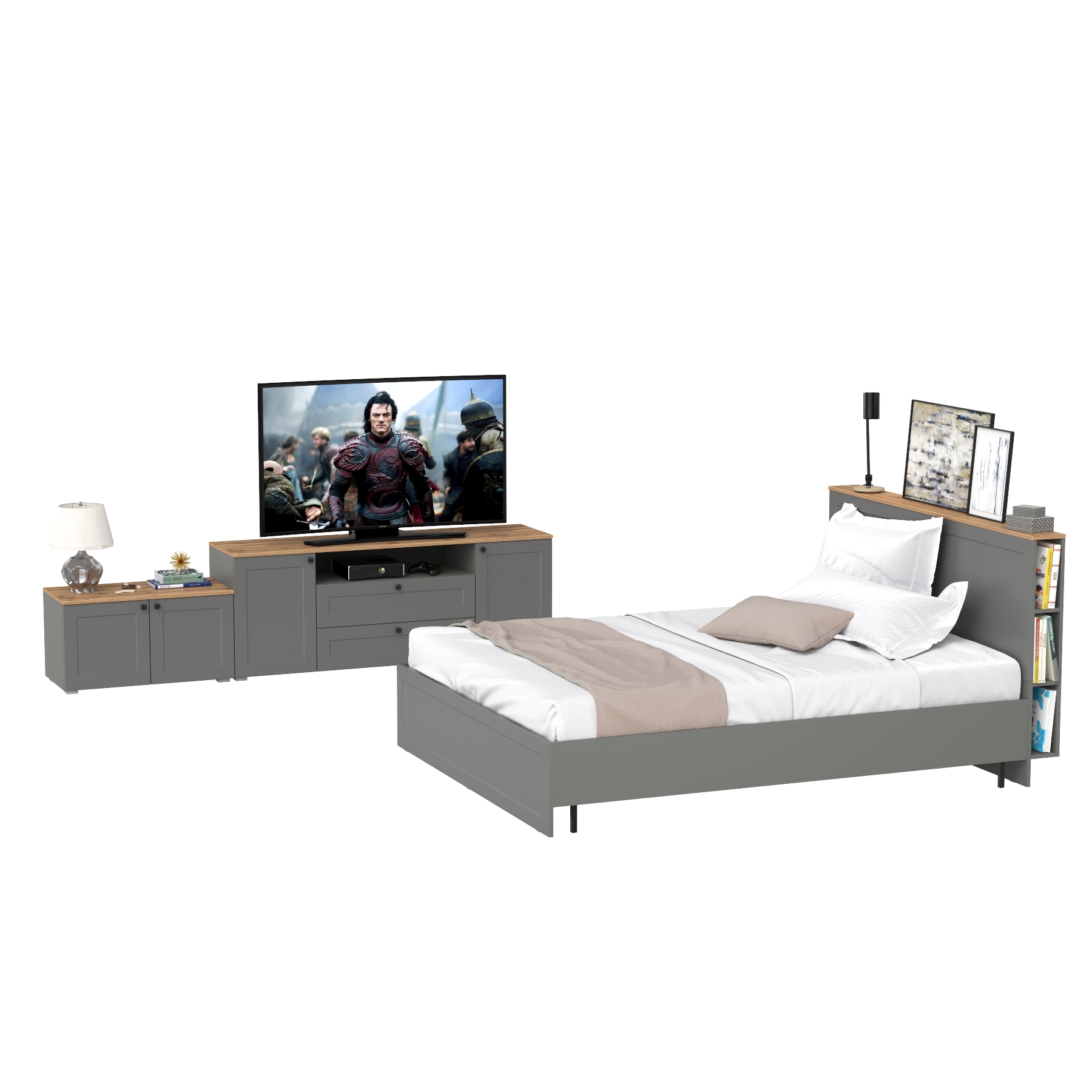 Отзывы о Столплит Спальный гарнитур Остин из кровати 1600 с ортопедом с тумбой для ТВ и тумбой с дверками Крафт золотой/Серый
